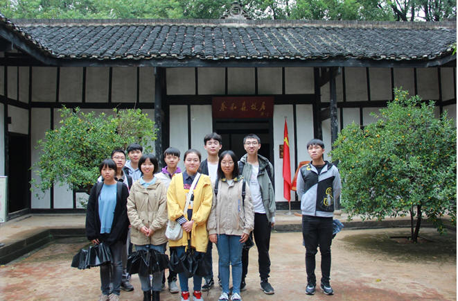 同学们首先参观了蔡和森故居,在这只有一张桌子,两张床,四条凳子的简陋屋子里,毛泽东与蔡和森等四人决定新民学会的成立。即便是在这么简陋的环境下,即使生活异常的艰难困苦,他们对于革命的热情却从未衰减过。尽管那张桌子已经在岁月的风霜中变得破旧不堪,但它却见证了那段不平凡的时光。书桌上仅存的一盏煤油灯似乎也是在诉说着他们当年的努力。