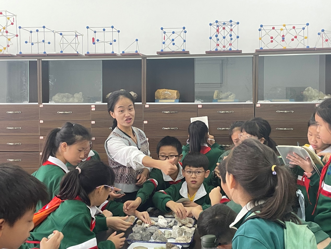 随后同学们拿着岩石标本,向老师提出了自己的见解和疑问。毛老师和沈老师悉心的给出了童趣的回答,并对同学们给予鼓励,从他们欣喜的眼神中可以看出释疑的快乐!