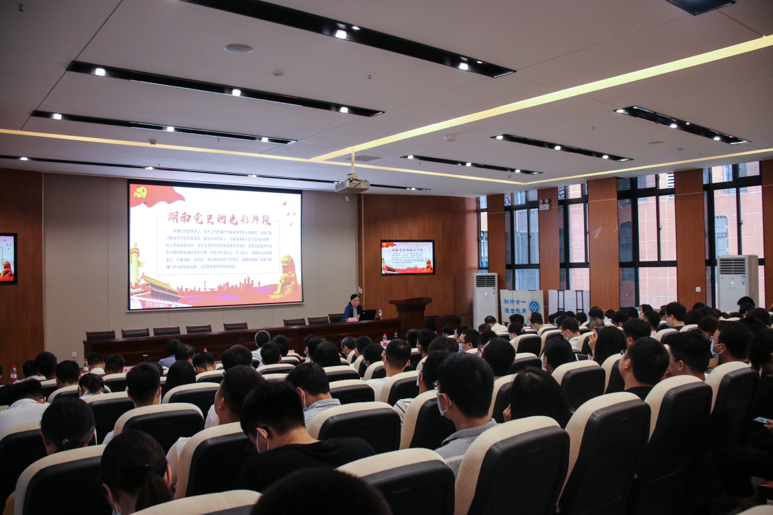 本次党课共分为四个部分。第一部分为“百年党史学习”,朱校长详略得当地讲述了百年党史发展的三大阶段,阐述了党的艰难历程,并通过回顾近代以来的党史,总结说明“在中国资本主义走不通,只有社会主义可以拯救、发展中国”。第二部分为“湖南党史的光彩片段”。在党的历史上,成千上万的英烈为国家独立和人民解放贡献了自己的全部力量,从讲解蔡和森同志、雷锋同志的事迹,到潮宗文化书社的创办、精准扶贫、首倡地十八洞村等各种事例,不同时期湖湘共产党人的伟大精神感人肺腑。