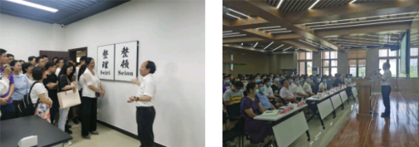 本次主题党日活动首先由冶金与环境学院院长柴立元院士带领博士研究生党支部代表参观金贵楼拉开帷幕,柴院士从一楼大厅展示的《中南炽金图》说起,向大家深情讲解了这幅图的含义,“炽”是希望兴盛,炽金图象征着永远兴盛的冶金学科和献身科研的报国热情。随后,师生党员来到三楼参观国家重金属污染防治工程技术研究中心和实验室,看到管理得井井有条且一尘不染的实验室,朱校长动容地对在场博士研究生叮嘱道:“柴院士不但能干大事,还注重细节,‘细节决定成败’,‘做大事更要拘小节’,希望大家都能好好学习这种精神。