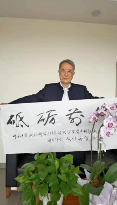 青年科协地信院分会成立大会发来祝贺视频,并为地信院青年科协题词“砥砺前行”,殷切寄语地信院全体青年教师、学生能够不忘初心,砥砺前行。