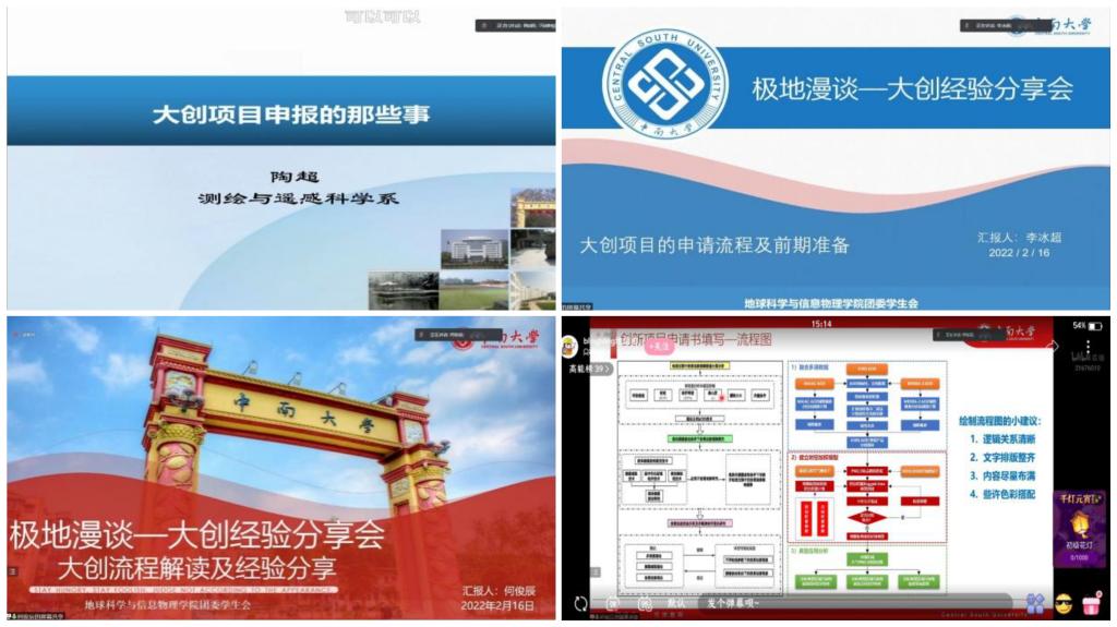 团委学生会特别邀请经验丰富的老师及同学举办“极地漫谈”系列活动——大创经验专题分享会。本次活动于2022年2月16日下午进行直播分享,直播在地信院团学会官方B站账号“blingbling地信君”线上进行,总人气达4684人次,获得了老师及同学们的一致好评。