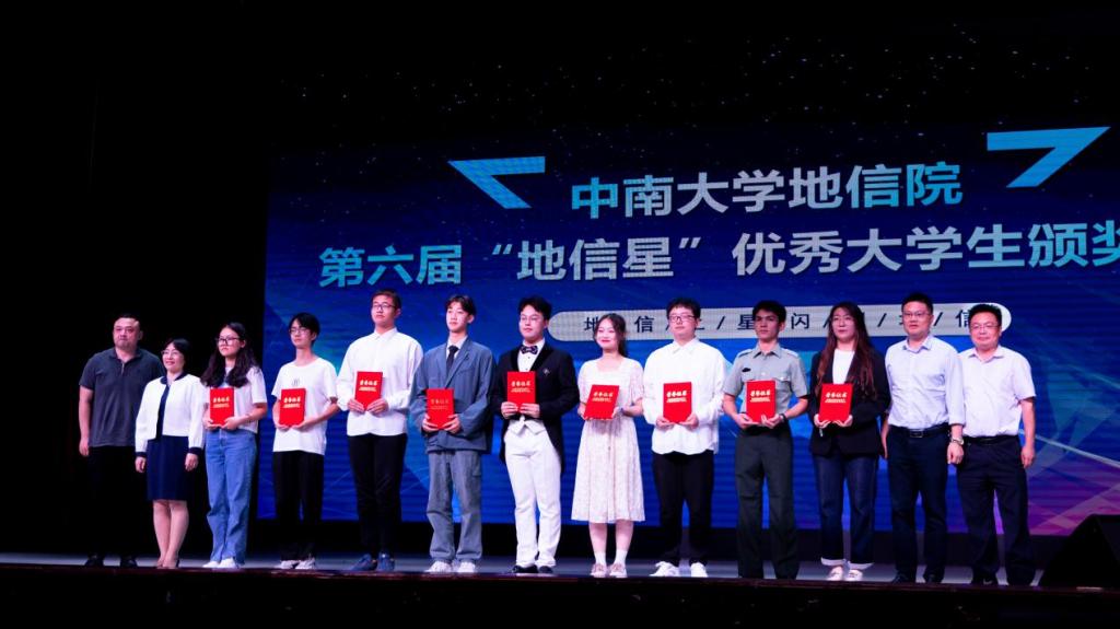 第一篇章结束后,晚会现场举行了地信院第六届“地信星”优秀大学生颁奖仪式,由地信院党委副书记李建军、副院长李志伟、副院长冯德山,探花社区