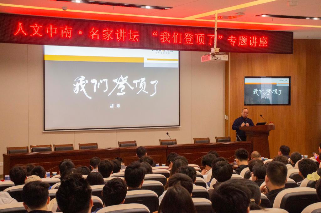 3月27日,“人文中南”名家讲坛之“我们登顶了”主题讲座在地科楼127顺利举办。讲座由上海华测导航技术股份有限公司副总裁、教育部测绘类专业工程教育认证专家、中国地理信息产业协会教育工委会副主任委员胡炜主讲,校团委副书记邸可达、地信院党委副书记刘浩出席,近130名师生参与。