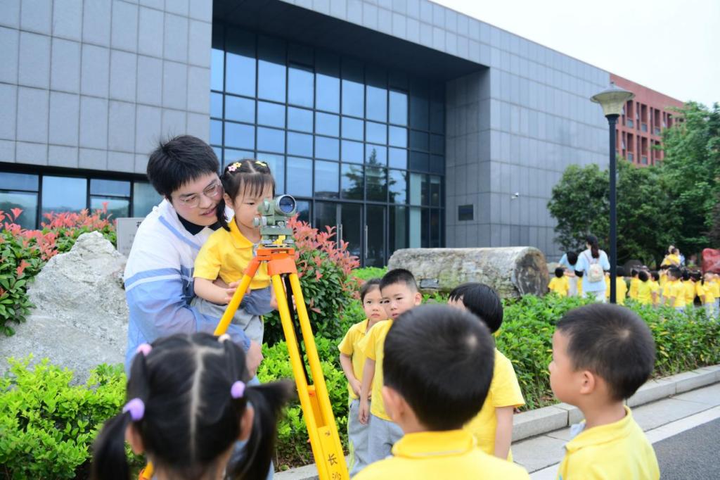 从静态展示转向户外实践,孩子们在研究生志愿者的指导下,首次实际接触了测绘仪器。通过观看操作过程,孩子们不仅体验到科技的力量,还学会了测量与探索的乐趣,探索科学奥秘的种子也在他们心中悄然萌芽。