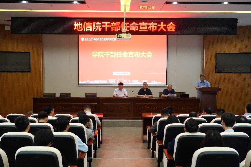 干部任命宣布大会在地科楼127报告厅顺利举行。学院党政班子成员,系、实验中心、业务办学工办、综合办及教授委员会正、副主任,正副科级干部,及六位在职教工党支部的支部书记出席本次活动。学院党委副书记刘浩主持活动。