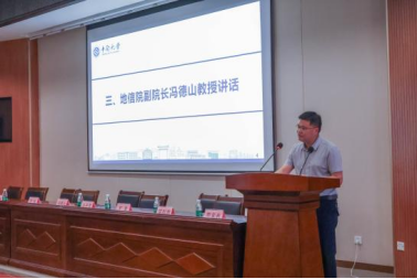 随着庄严的国歌声响起,开营仪式正式拉开帷幕。首先,参与活动的学员们通过观看地信院的宣传片,对学院的历史、发展和特色学科有了更深入的了解。随后,冯德山教授发表了热情洋溢的动员致辞。他以风趣幽默的语言对学员们的到来表示热烈欢迎,并详细介绍了地信院各系的特色学科与研究方向。 冯院长用生动的比喻形容了学员与夏令营之间的紧密联系,并鼓励大家不仅要追求学术成就,更要为国家和社会做出贡献。