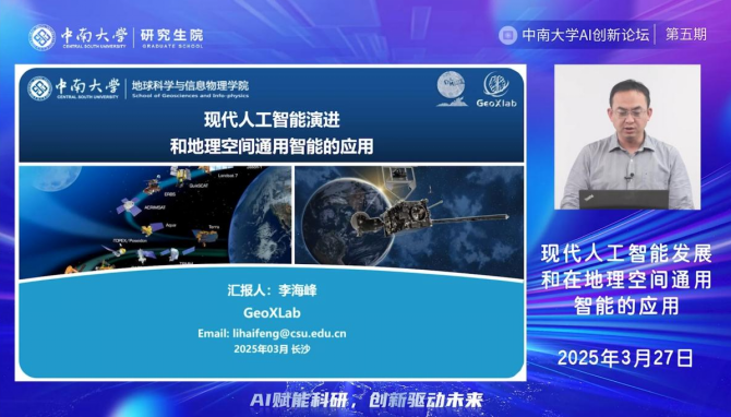 本次论坛第五讲深刻展现了人工智能与地理信息科学交叉融合的广阔前景,李海峰教授立足国家重大战略需求构建的理论框架与实践路径,探讨了地理空间智能技术创新发展的前瞻思路,彰显了科技前沿领域中“地信人”的使命担当。学校将持续深化人工智能与优势学科的交叉融合,为培育发展新质生产力、赋能中国式现代化贡献“中南智慧”。
