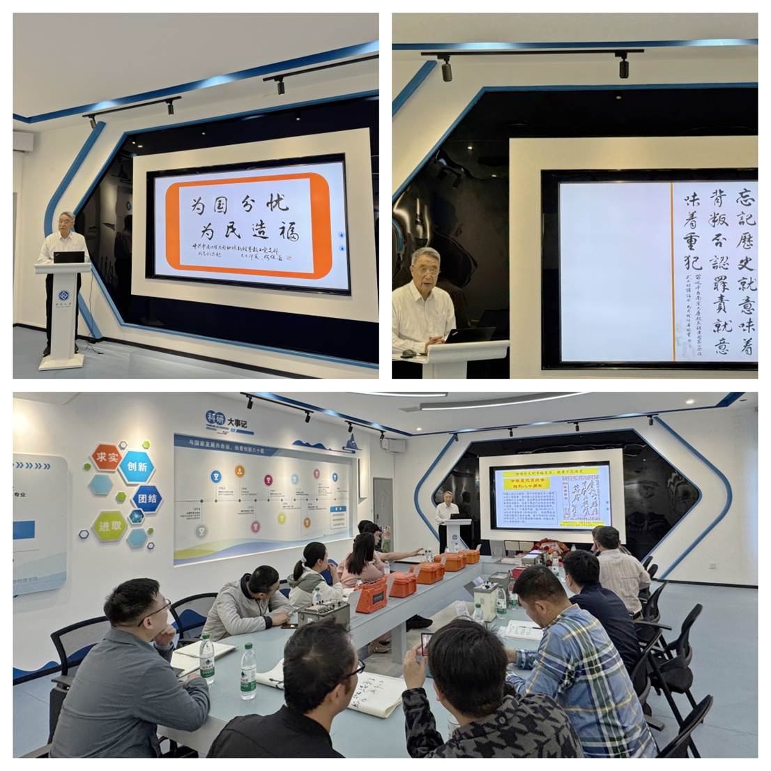 虽已年过九旬,何院士坚持全程站立,以饱满的热情讲授党课一小时。他结合抗日战争胜利80周年的历史节点,通过展示亲笔书写的书法作品和亲身经历,生动再现了中国共产党领导下的抗日民族统一战线如何凝聚力量、挽救民族危亡,并逐一讲解背后烈士的感人事迹。“我幼年时目睹的是一个积贫积弱的中国”,他感慨道,“但有幸能看到今日中国挺起胸膛的底气”。他回忆抗战时期,老师们即便领不到薪水,仍坚持在敌机轰鸣中授课,“这种坚守教育报国的精神,值得我们永远传承”。