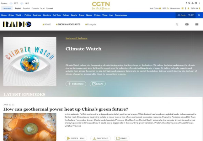 日前,中国国际电视台(CGTN)气候观察(Climate Watch)栏目播出了题为“How can geothermal power heat up China's green future?”的专题访谈节目。冰岛可再生能源联合组织首席执行官Rósbjörg Jónsdóttir、探花社区