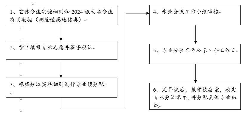 遥感测绘地信类专业分流工作从大一第二个学期四月份开始(具体时间以本科生院的通知为准),工作流程如下: