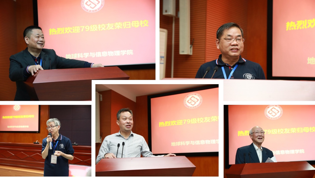 接着教师代表罗贤昌教授发言,他带来了当年的讲课笔记和当时的教学任务分配书,回忆起当年师生教学相长的历历往事。王家清老师作为当年地质系七九级的辅导员,发言时说同学们那时候很青春,稚气未脱,很可爱,因为当时的中小学学制较短,他们大部分同学入学年龄都在十五六岁,确实是特别的“青春”。