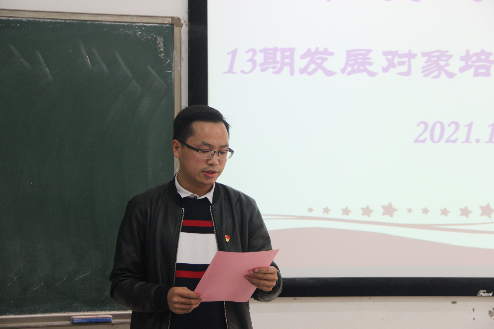 典礼第三项,培训班班导师杨通田向大家介绍培训班基本情况。杨老师从培训安排、考勤制度、成绩考核、结业证发放四个方面为在场学员们耐心详细地讲解了党校培训班的制度,并对重点的注意事项进行了强调。最后,杨老师宣布地信院第13期发展对象培训班正式开班,并预祝全体学员在党课学习中学有所成。