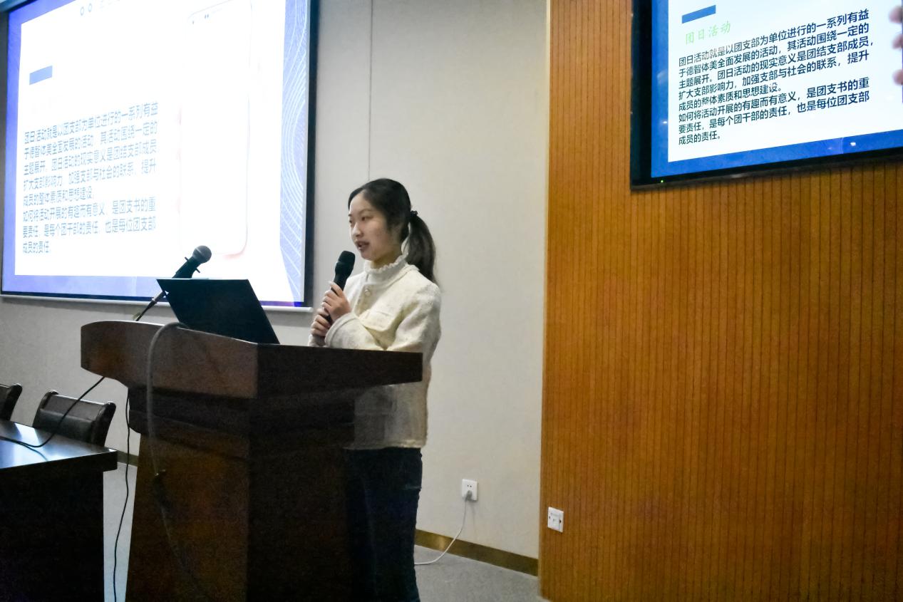 本次培训会邀请到了校团委组织部活动管理中心杨玥同学为团支书讲解团日活动,她围绕团日活动主题选定、团日活动主题策划与观摩、团日总结、标兵评选四个方面为团支书介绍团日活动流程,加深团支书对于团日活动的理解,指导团支书组织开办更优秀的团日活动。紧接着,由测绘2002团支书刘一骁同学,地信1902团支书方婧同学作为优秀团支书代表进行经验分享,他们依次通过自己的切身工作经历就团日活动的开展、宣传以及团日总结书写等方面的问题展开经验分享,更好地帮助各位团支书开展更优秀的团日活动。