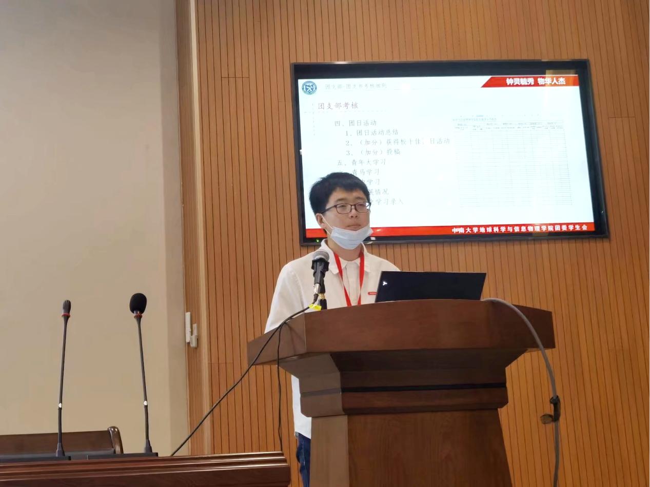 接下来由地信院团委组织部韩世博同学为各位团支书开展基础团务工作培训,培训内容主要包括团支部活力工程建设、青马工程、团支部手册、团支部团支书考核、青年大学习以及智慧团建支部管理员操作方法等相关知识。在韩世博同学生动形象的讲解中,各位团支书认真听讲,不时记录下会议要点及相关工作要求,收获颇丰。最后,在嘹亮的共青团团歌声中,培训圆满结束。
