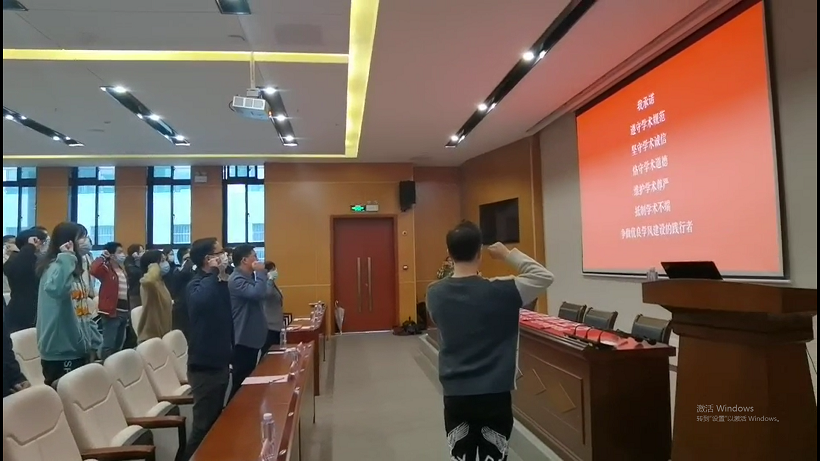 在聆听了老师的谆谆教诲后,研究生同学们满怀着对未来学习生活的憧憬和信心,全体起立,举起右手,许下誓言:“做高尚学术道德的践行者,做优良学术风气的引领者”,做出了庄严承诺。