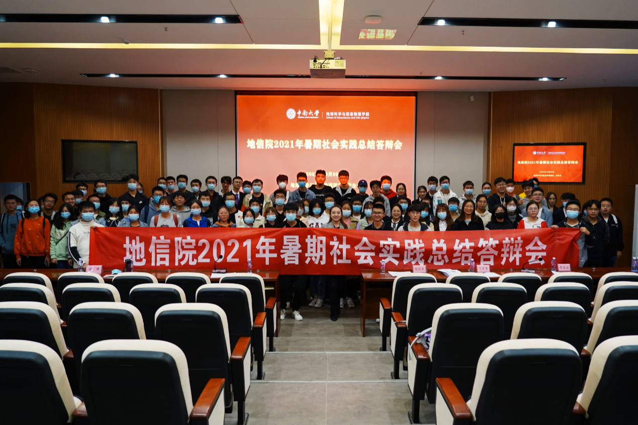 2021年暑期社会实践总结答辩会于地科楼127报告厅顺利开展。地信院研究生辅导员田可,地信院分团委书记、21级辅导员刘琦,地信院20级辅导员杨晨雨、杨通田,2019—2020学年校团委社会实践部部长胡华参,现任校团委社会实践部副部长刘常慧、地信院第十二届学生会副主席、2020-2021学年探花社区