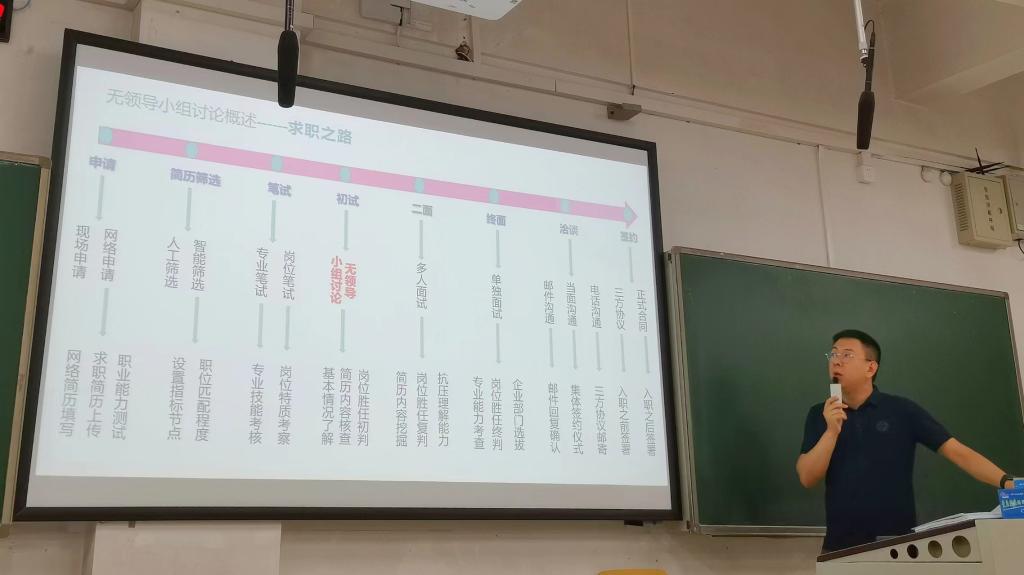 就业指导中心的王梓懿老师为我们讲授群体面试攻略。王老师首先为我们分析了校招和社招的区别,告诉我们要珍惜应届生的身份。接下来王老师主要围绕无领导小组讨论为我们解析了群体面试的要注意的细节和得分要点。在无领导小组讨论中往往有四种人:羊派,一味接受,沉默寡言;狼派,态度强硬,比较自我;虎派,沉着冷静,统筹大局;蝴蝶派,发言不多,一鸣惊人。我们要努力做虎派和蝴蝶派,在无领导小组讨论中展现出自己的团队合作能力和组织协调能力。最后王老师表示细节决定成败,在面试中,一定要认真审题,注意礼仪,同时在立场和观点方面要具体情况具体分析,学会变通。经过一上午的无领导小组讨论仿真还原后,同学们深刻意识到自己还有很多方面需要提升,这场求职培训来的十分及时。