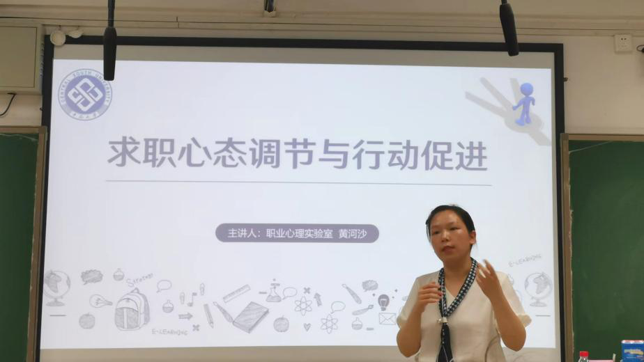 就业指导中心黄沙河老师为我们讲解求职心理调适与行动促进。在求职中我们每个人都会有情绪或认知上的困扰,我们需要做的是正确认识我们的迷茫,充分准备,同时寻找积极资源,及时给予自己正强化,适当降低目标,以成功来激励自己,另外还要学会适当舍弃,保持初心。