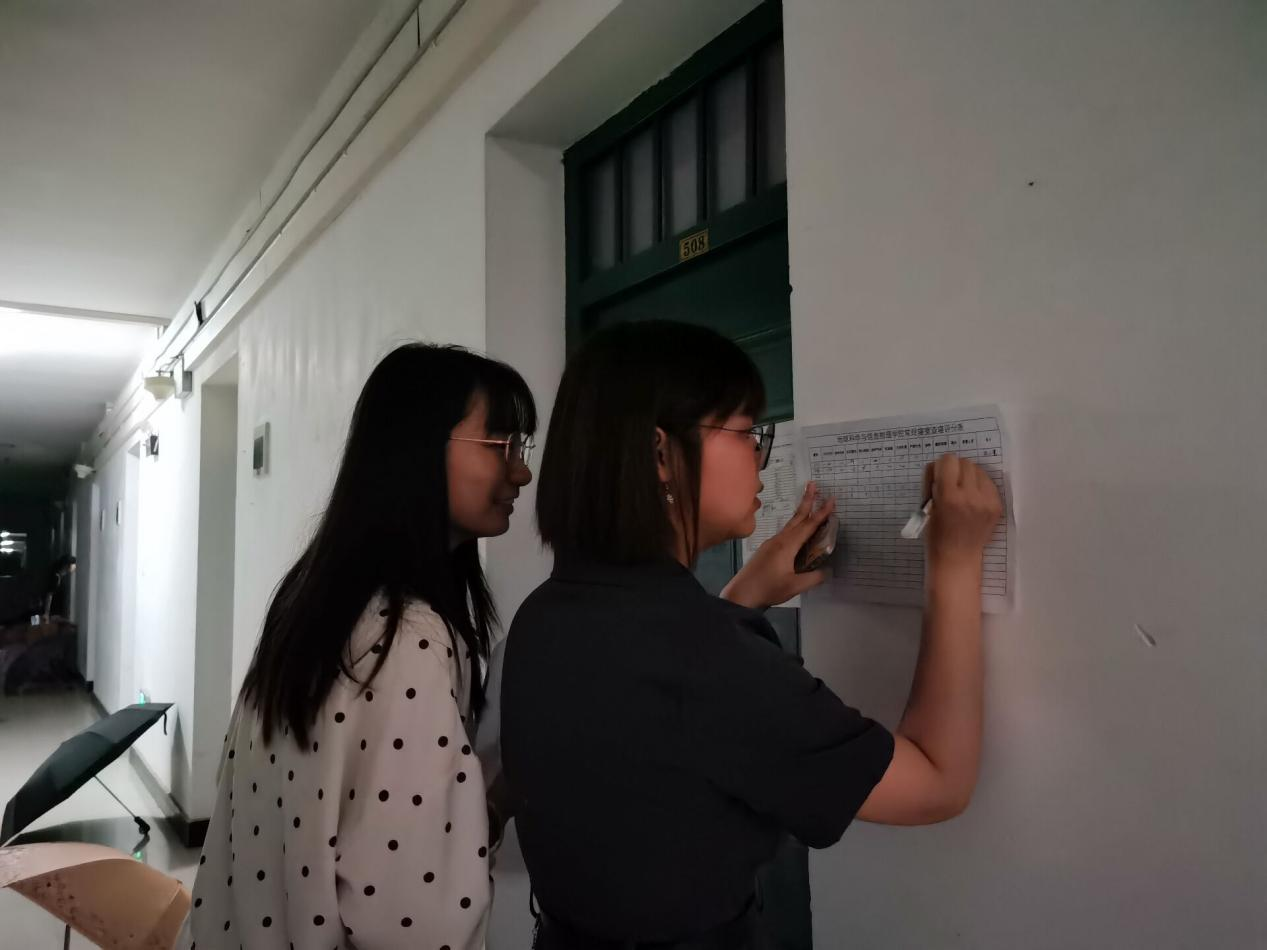 晚上19:40,负责查寝的工作人员准时到达指定位置进行签到、领取评分表并合影留念。晚上20:00,查寝工作正式开始。查寝人员认真负责、公平公正地检查了每一个寝室并总结打分,同时向同学们耐心地解释了扣分原因与注意事项。