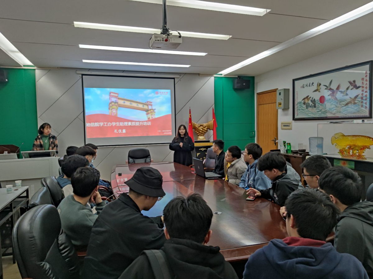 为提升学生助理的技能水平和综合素质,使其更好地发挥为老师和同学服务的职能,地信院学工办助理团队分别于3月28日、4月5日、4月11日在地学楼336会议室开展了以EXCEL使用技巧、办公室礼仪、新闻稿写作为主题的学生助理技能培训会。地信院党委副书记李建军、19级辅导员彭璐、20级辅导员杨通田以及地信院学工办全体学生助理参加本次系列培训活动。三场培训会分别由彭璐老师、学生代表聂子婷、郭书源、余朗主讲。