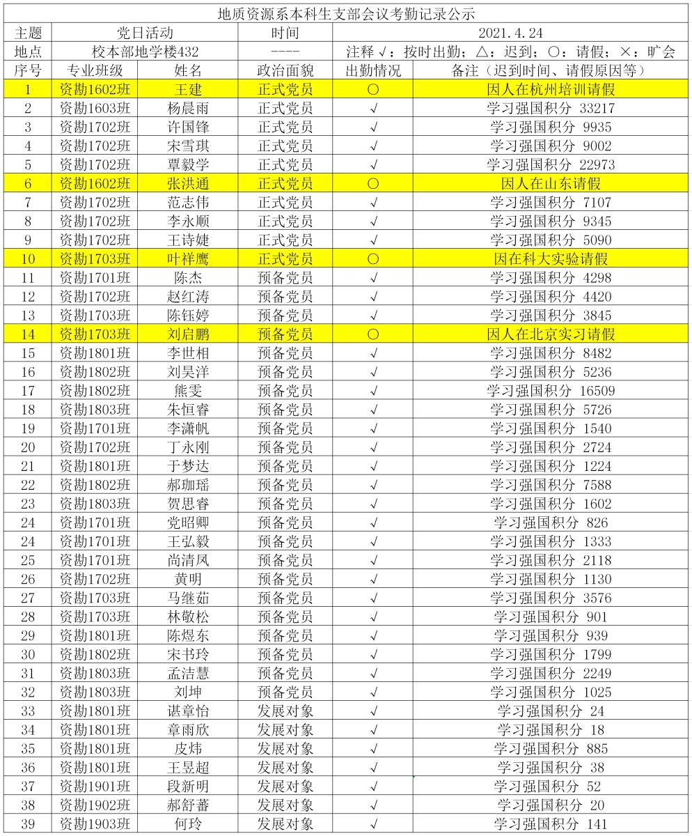 4月24日晚20:30,地质资源系本科生支部在地学楼432开展了四月主题党日活动。会议由朱恒睿同志主持,支部全体党员和发展对象参加。