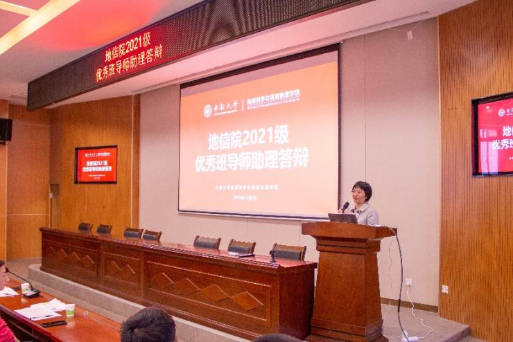 2021级优秀班导师助理答辩会在地球科学楼127会议室顺利举行。学院党委副书记李建军老师、研究生辅导员田可老师、2019级辅导员彭璐老师、2022级辅导员刘凯老师出席答辩会并担任评委,2021级和2022级班导师助理以及学生代表参加答辩,答辩由杨晨雨老师主持。