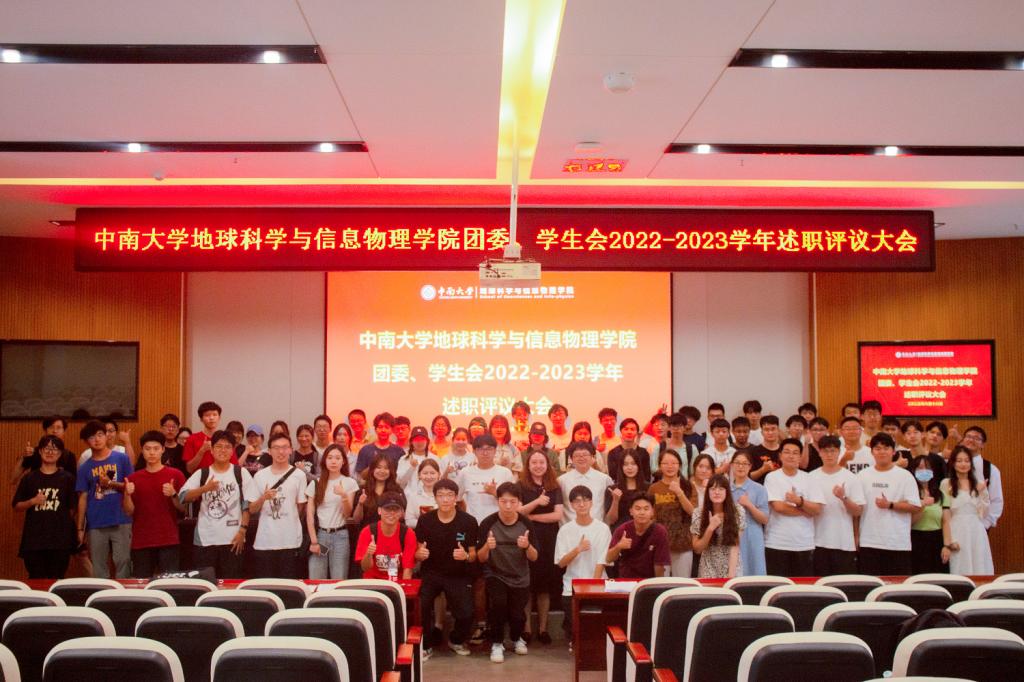 团委、学生会2022-2023学年度述职评议大会在地科楼127报告厅召开。地信院团委书记刘琦老师出席会议,67名学生代表及各部门代表参会,会议由韩世博同学主持。