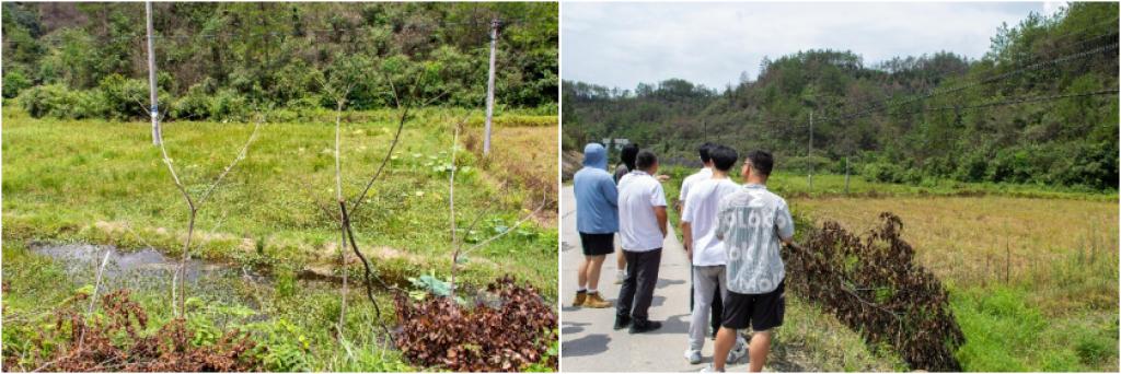 随后,实践团来到了公安村,对一处存在耕地“非农化”问题的违规建筑拆除建设情况进行了实地走访,根据此地区为公安村耕地指标之一,因地处山坡前期处于抛荒状态,后发现违规建立了养猪场,村镇干部及时对该问题进行整改,拆除了养猪场。村委村政府通过实地分析,发现此区域土质较差、灌溉不便,不适合种植水稻,拟种植玉米等其他粮食作物,相关方案即解决了本村的农村耕地“非农化”问题,也为后续工作提供了参考。