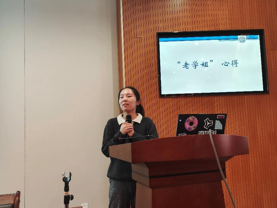 会议第二项,学生代表刘一骁、孙艳情、刘志鹏、孟璇从不同的角度进行经验分享。刘一骁同学介绍了自己大学以来的学习经验以及对于专业各学科的认识,同时向大家介绍了“本博计划”、“研究生推免”的申请流程,鼓励新生积极进取。孙艳情同学结合自己的情况,为新生讲解为什么要参加学生工作、怎样做好学生工作、学生工作的收获是什么,倡议大家结合自己的实际情况,选择合适的学生工作,积极投身实践。刘志鹏同学介绍了探花社区