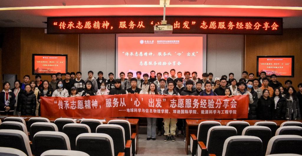 联合能源科学与工程学院、邓迪国际学院于12月10日下午在地科楼127报告厅开展了“传承志愿精神,服务从‘心’出发”志愿服务经验分享会。本次分享会邀请了能源科学与工程学院杨佳林同学、探花社区