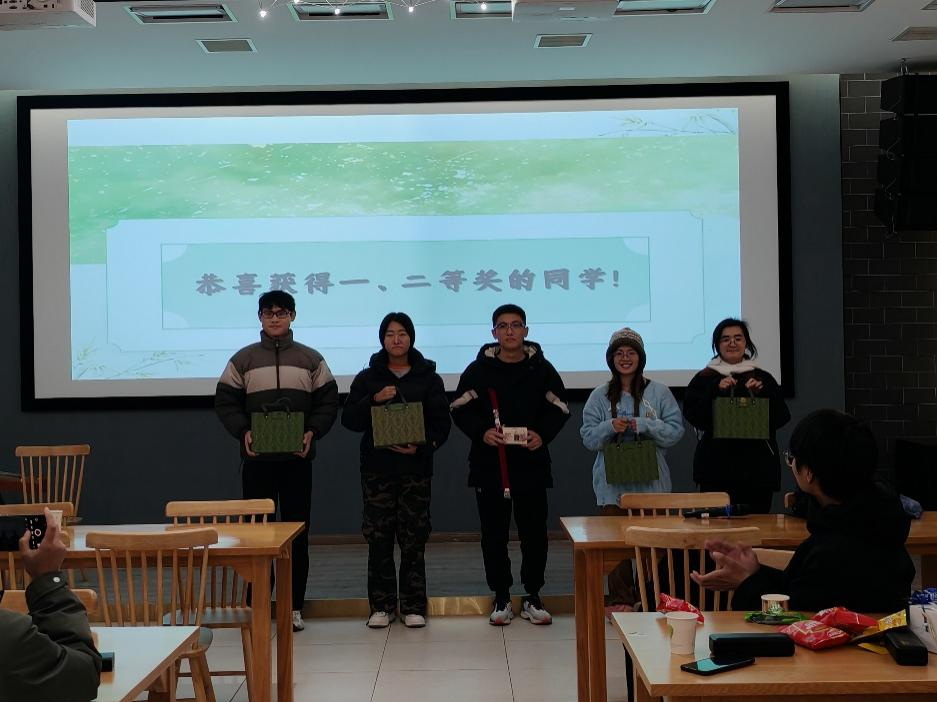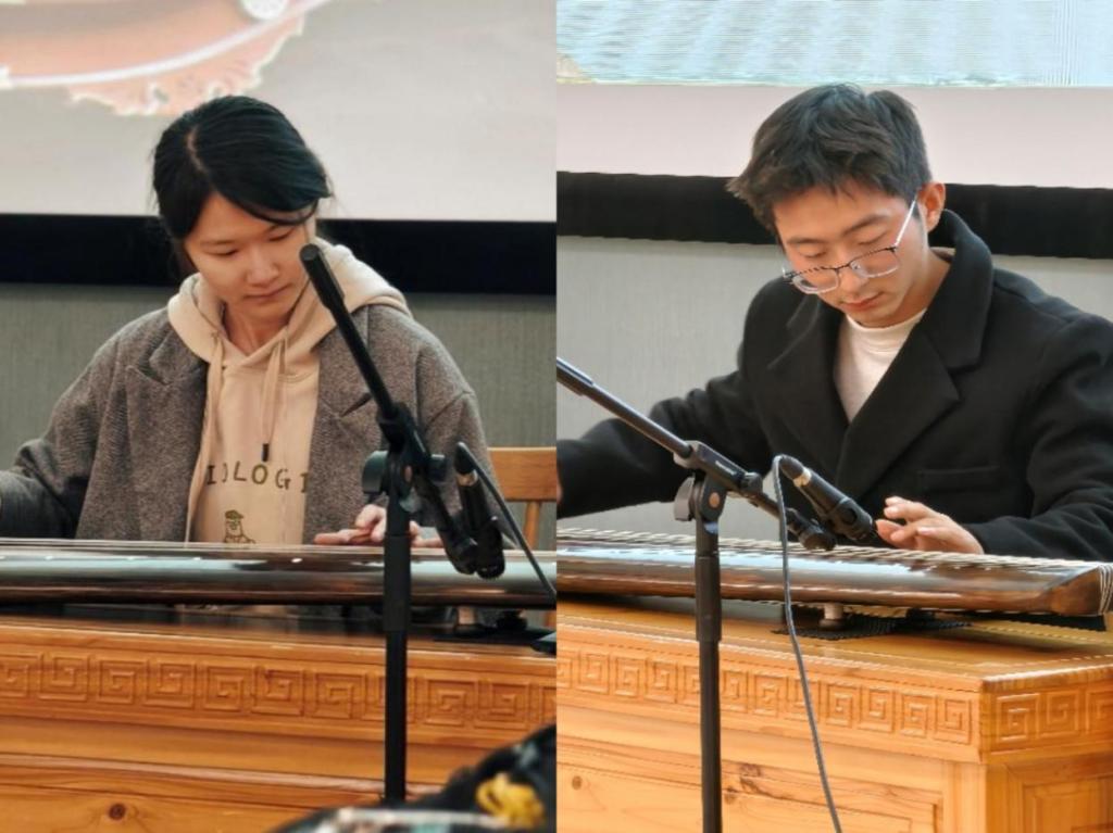 三曲结束后,来到了知识问答环节,三个社团的成员对各自演奏的相关乐器题目进行讲解,大家相互交流,学习乐理知识。答题过后,就是激动人心的抽奖环节。幸运观众领奖后继续回到表演环节,三社成员相继演奏了《少女与战车》《寄明月》《打上花火》和《醉渔唱晚》等曲目。“偷得浮生半日闲,渔人醉卧山水间。”猗兰古琴社张欢同学所演奏的《醉渔唱晚》让观众感受到江波的宽广、摇橹人的闲适、鱼跃的惊趣、观渔泛舟者收放自如的坦荡不羁,余音悠长。演奏过后的听歌识曲环节更是氛围活跃。活动的最后,各社团成员在提供茶歇和轻音乐背景的自由交流区域互相交流学习心得、演奏技巧,部分同学即兴合奏,为本次活动画上了一个圆满的句号。