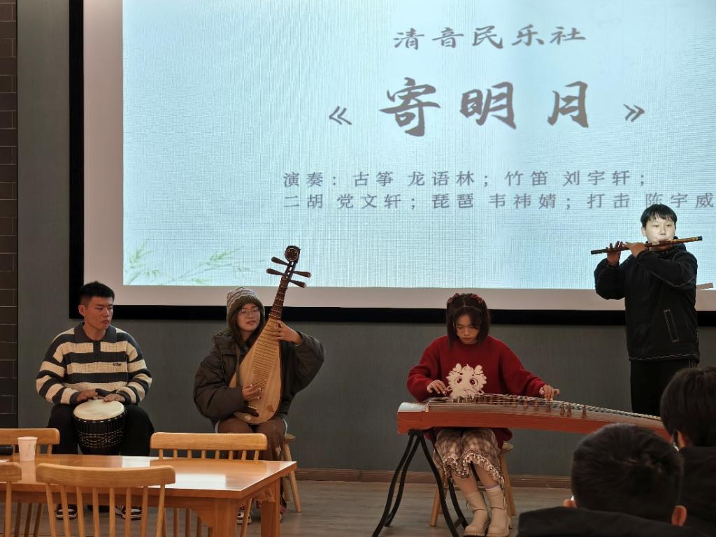 2024年12月14日晚,清音民乐社、橘子口琴社、猗兰古琴社的同学们齐聚在探花社区