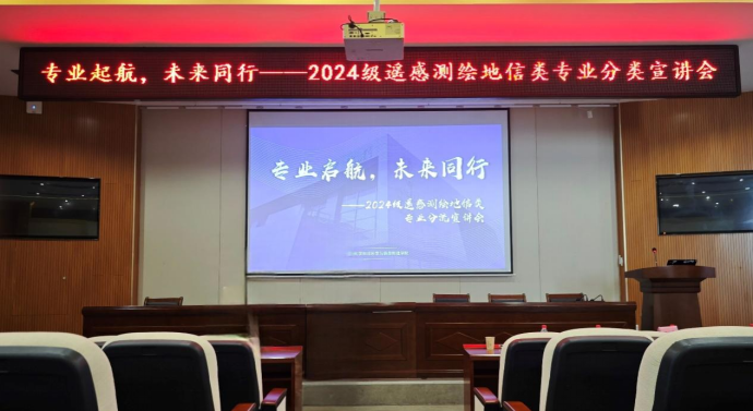 于新校区地球科学楼127报告厅举行“专业启航,未来同行”——2024级遥感测绘地信类专业分流宣讲会。会议由2024级辅导员王爽爽老师主持,地理信息系系主任李海峰老师、测绘与遥感科学系副主任苗则朗老师、遥感测绘地信类2403班班导师尚文老师、2024级年级辅导员寇浚哲老师出席本次宣讲会,2024级遥感测绘地信类全体本科生参会。