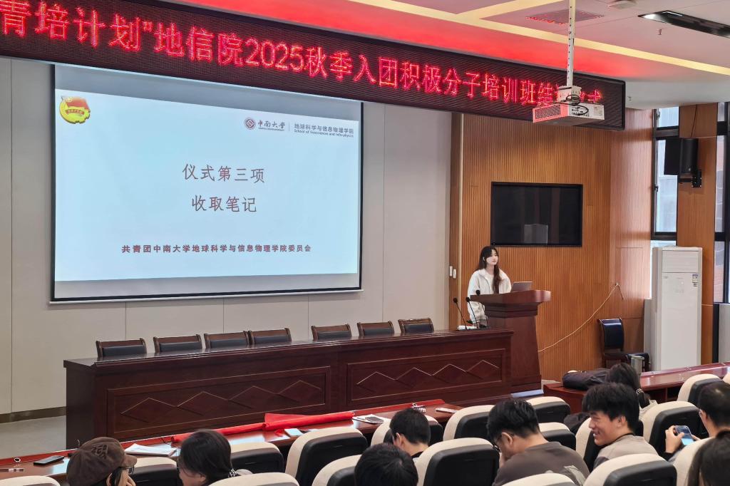 为进一步加强地信院入团积极分子的思想政治建设,提升青年学子的政治素养与综合能力,地信院2025秋季入团积极分子培训会结课仪式暨团课实践活动于11月12日下午顺利开展。结课仪式于地科楼127举行,全体2025秋季入团积极分子参会,仪式由院团委组织部黄蘭主持。