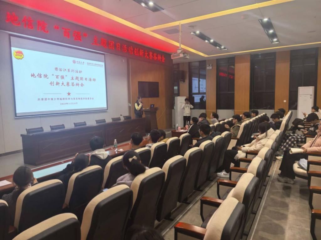 2025年11月29日,地信院“百强”主题团日活动答辩会于潇湘校区地球科学楼127室顺利举行。学院团委研究生会学生副书记韩世博,2024 - 2025学年院团委学生副书记黄思圻,院团委学生副书记杨颜瑞,校团委活动管理中心负责人祖彤炜、朱华宇,院团委组织部全体成员及地信院各团支部书记参会。会议由丁若涵同学主持。