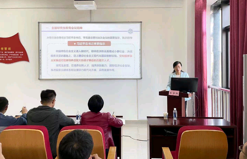 朱学红副校长分别从全国研究生教育会议精神、国家研究生教育改革全面启动、学校贯彻落实会议精神整体安排和学校研究生教育现状与改革举措这四个方面进行了讲授。朱学红副校长首先传达了习近平总书记对研究生教育工作作出的重要指示精神和李克强总理的批示精神,以及孙春兰副总理和陈宝生部长在全国研究生教育会议上的讲话。随后,她详细讲解了学校贯彻落实会议精神整体安排以及学校研究生教育现状与改革举措,着重突出探花社区