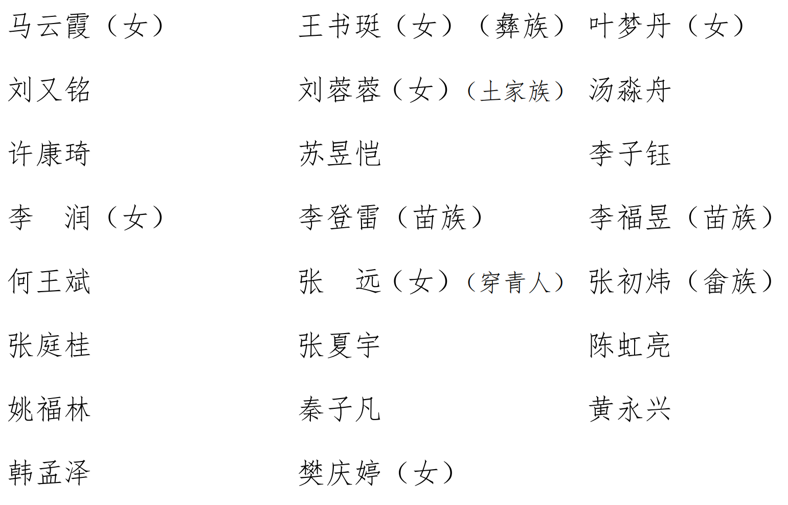 副团长:蒋钰瑾(女)(土家族)
