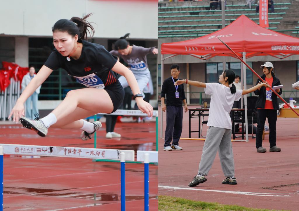 在个人项目中,地信院的学子们更是捷报频传。径赛方面:靳盼同学获得女子400米栏金牌和女子100米栏银牌,400米栏更是打破了校运会记录;张瑶菲菲同学获得女子100米银牌;刘昱仪同学获得女子400米第四名;孟轩宇同学取得男子5000米第六名和1500米铜牌的成绩;高贵富同学获得110米栏第五名的成绩;熊贤材、黄蘭两位同学分别获得三项全能男子组和女子组第六名的成绩;何兴涛同学获得男子5000米第八名的成绩。田赛方面:廖咏智同学获得女子跳高银牌;孙飞同学获得男子跳高第四名和男子跳远的铜牌。
